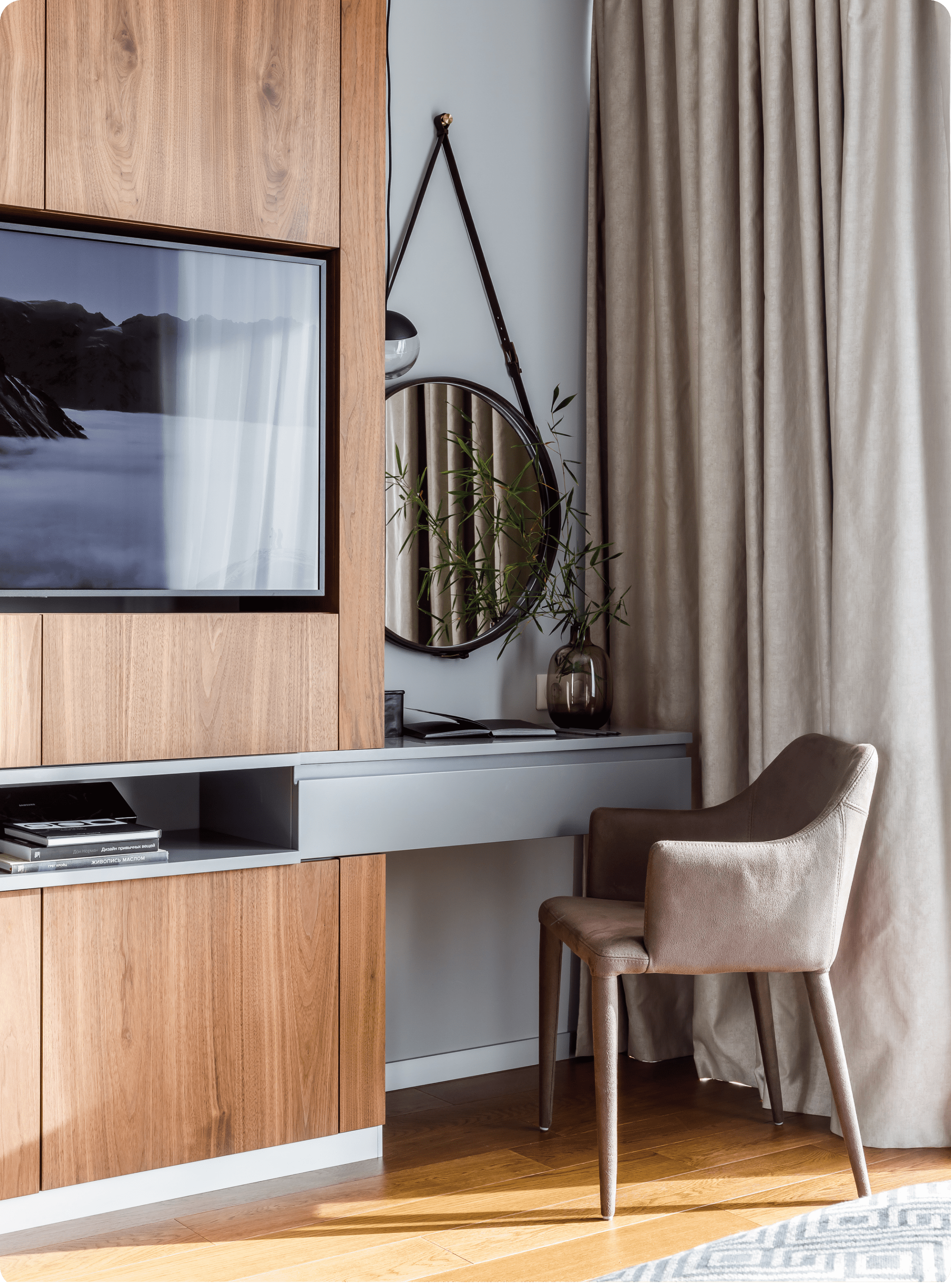 Над каждым проектом работает команда специалистов: дизайнер, архитектор, руководитель строительных работ, менеджер отдела качества